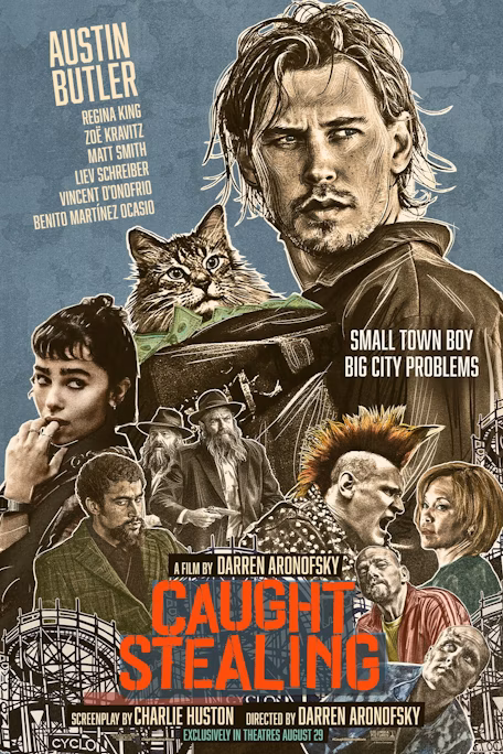 Fans of Aronofsky’s other films were surprised to see this genre of action-packed crime comedy-thriller, as some of his other work includes “The Whale,” “Mother,” and “Black Swan.” However, to me this film fit right in with the universe that he created in 2000 with his movie “Requiem For A Dream.” Each film is set in New York, and consists of people trying to outrun their past in the big city. Both movies, oddly enough, were also adaptations of novels. “Requiem For A Dream” was adapted from Hubert Selby Jr. ‘s novel, and “Caught Stealing” was adapted from a 2004 novel of the same name by Charlie Huston. So for me it only makes sense a novel written around the same time that “Requiem For A Dream” came out, set also in New York would carry similar energy and characters to Aronofsky’s latest film.