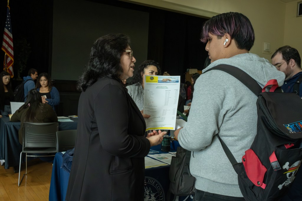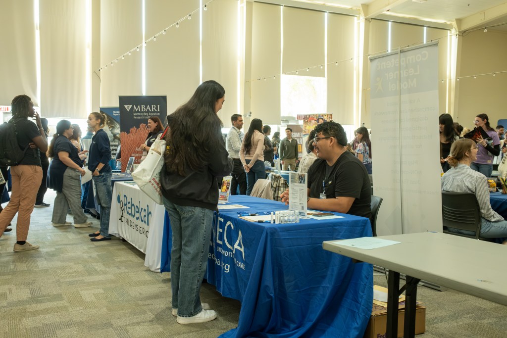 “We’ve had a lot of students stop by our booth, a lot of kinesiology students interested in internships and shadowing our physical therapists and our rehab,” Enza Sanchez, representing Montage Health said. “I think it’s important students do keep that in mind when they are inquiring about job opportunities, just come in a little bit more of a professional manner, but also come with questions and maybe knowing who is being represented.”
