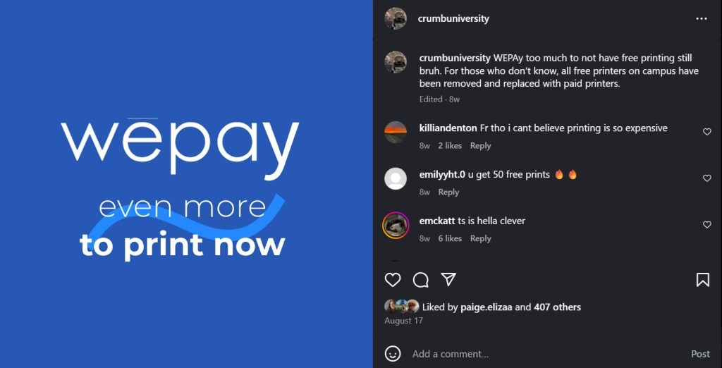 Since @crumb has continued to fill the role of being an unofficial campus resource. They often receive direct messages (dms) on Instagram from people who aren’t enrolled yet asking about the school. A lot of times, students will just dm them with issues they are having, many never get posted. It’s a difficult role, but one @crumb isn’t bothered filling. They see it as part of being a resource for students.