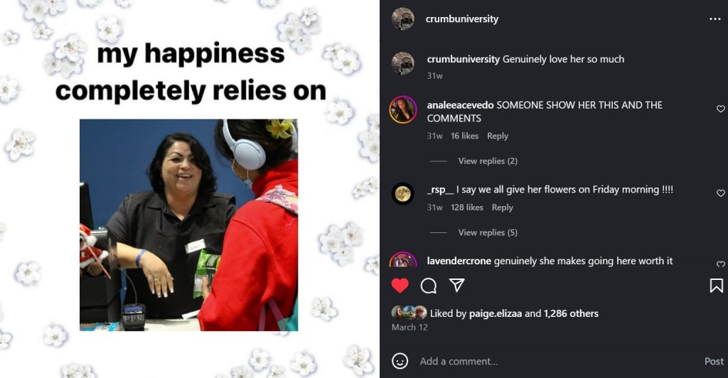 One of their most popular memes was about Gladys, a worker at the Seastore widely appreciated by students for her kind demeanor.That meme tapped into a love the campus population already felt for Gladys.